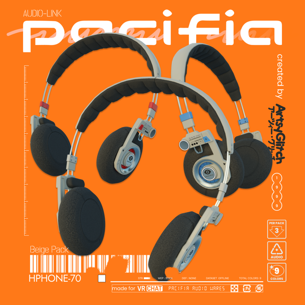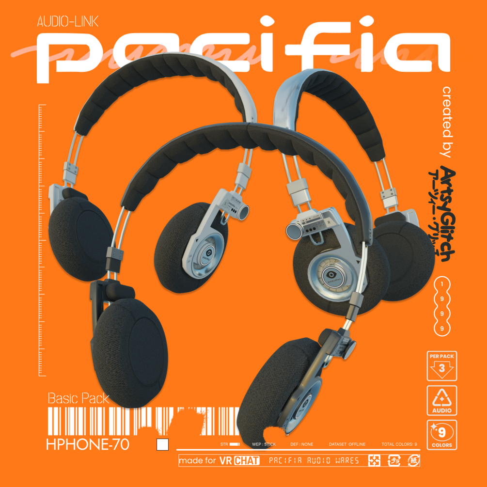 Inspired by retro headphones from the Walkman era, the HP70 headphones are a great Pacifia-approved audio ware set for any retro-electronic enthusiast! Add over your head with many blendshape options for a proper fit or wear around your neck for fashion and style!